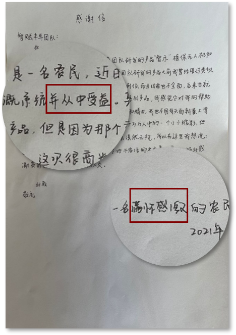 邢台市内丘县西关村李凤玲家,在应用本产品前农田的灌溉全凭人工,经团队精确分析个体灌溉1小时仅1亩地,效率仅为70% 大水慢灌对水资源的浪费率达60~70%。水量判断难精确,人工灌溉效率低。劳累的农活压得李凤玲直不起腰。 而在应用了本产品后,无人机遥感数据采集与地面灌溉系统数据采集使得相比于人工灌溉效率提高40%,灌溉水量浪费率仅达3%,每年可节省600吨水, 李凤玲的脸上又挂满了笑容。